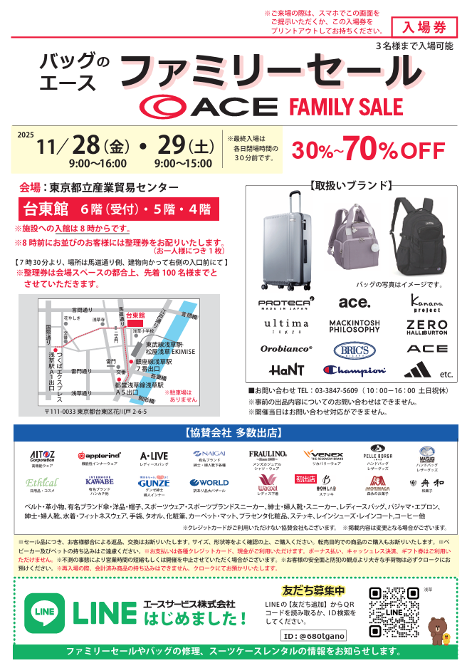 【決定】2025/12/10(水)13:00 〜 12/15(月)9:59 :エースファミリーセールオンライン(詳細はこちら)